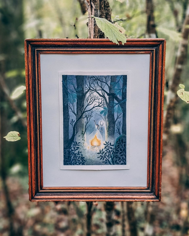 Illustration unique réalisée à l'encre acrylique, crayons de couleurs et eau de Lune🌙 Format A5 (21x15 cm) sur du joli papier texturé. Signée et envoyée avec son certificat d'authenticité.