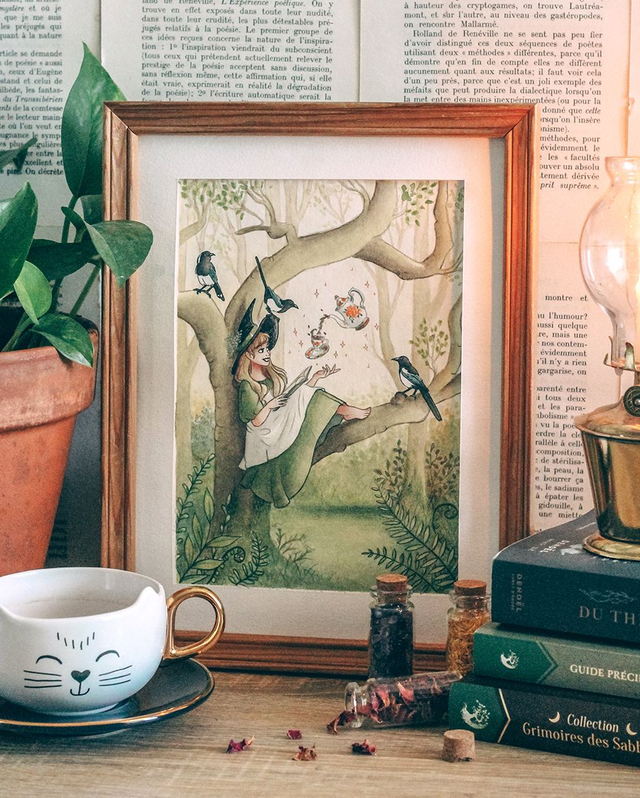 On raconte qu'autrefois, les sorcières changeaient de formes pour échapper à ceux qui craignaient la magie. C'était le cas des éclaireuses, amies des pies qui la protègent et lui font confiance 🐦⬛ Apportez un peu de sa magie dans votre foyer ✨️